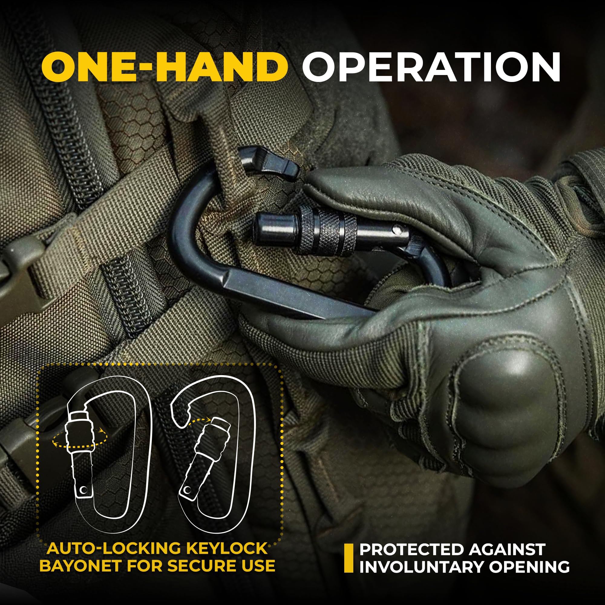 - Safe Locking - The M-Tac mountain grade carabiner has an auto-closing lock and can be used with one hand. Once you release the spring load, it'll lock automatically. And to open the carabiner lock, simply unscrew the twist barrel, which is blocked, and press the clasp with your finger.