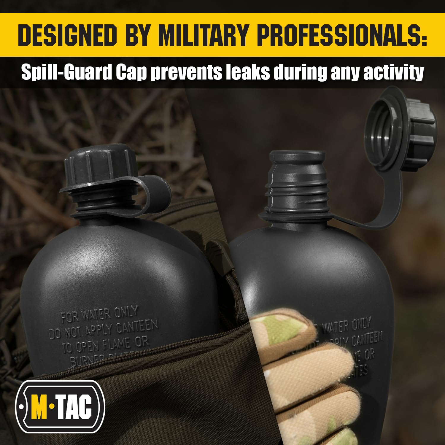 - Complete Compatibility: Pair this Tactical Water Bottle with the M-Tac Molle Canteen Pouch Bag to create a full military canteen kit; Perfect water canteen for military and tactical use, as well as camping and hiking