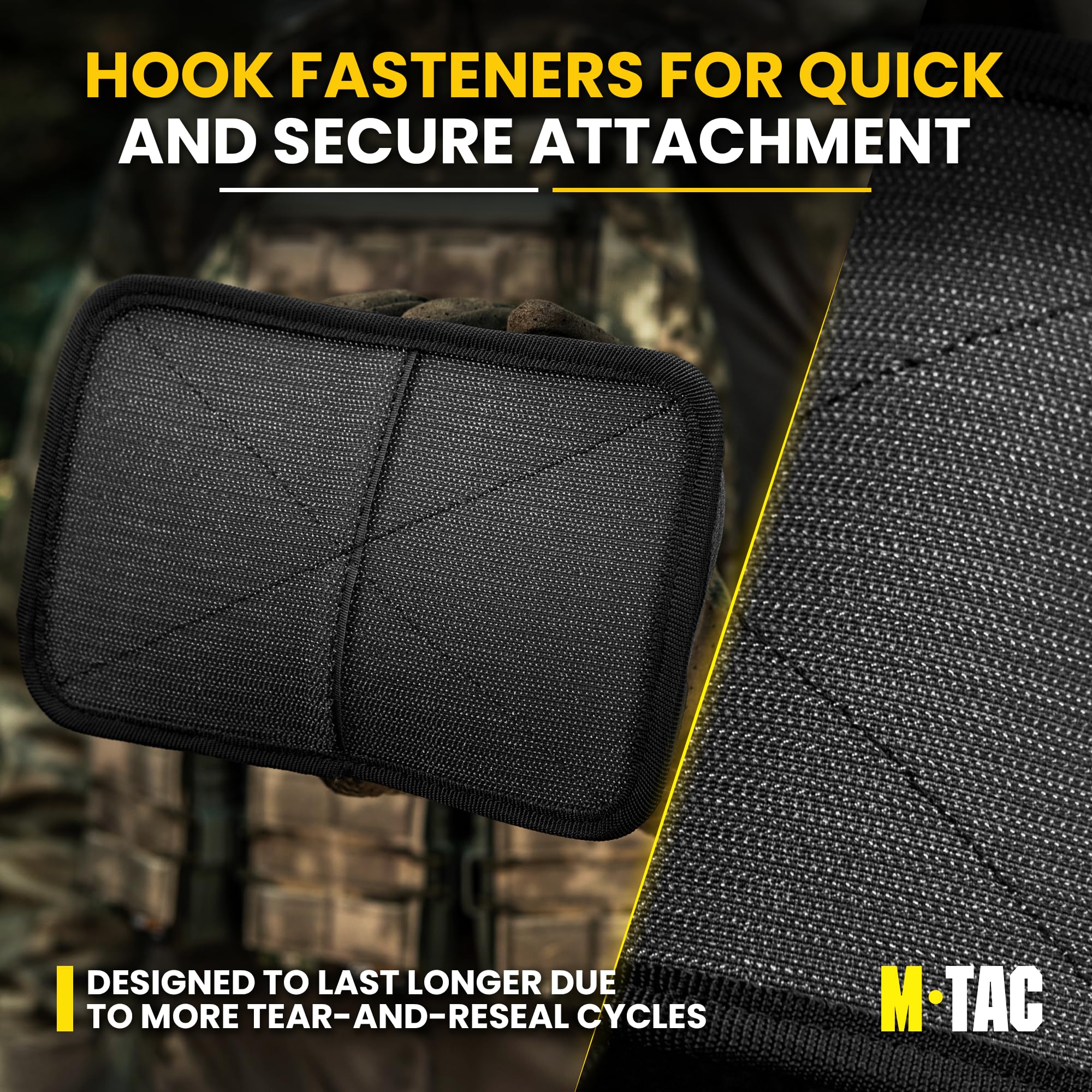 - HOOK & LOOP BACKING (VELCRO-TYPE COMPATIBLE) — Secure attachment to loop panels inside backpacks and bags. Compatible with most hook-and-loop systems (Velcro-type surfaces).